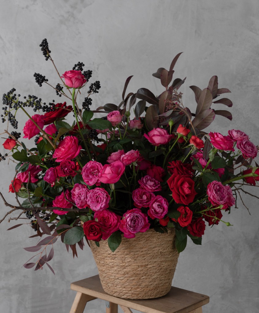 Композиция в корзине, "Гранатовый браслет"